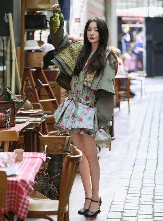 最近,杨幂还去了巴黎参加时装周,穿了一件军绿色的外套和同色系的碎花裙,裙子蓬蓬的,显得她的腿特别细,就像漫画里的一样。她的眼妆是用花西子画的,看起来有种破碎的美感,口红是完美日记的“幂桃色”,指甲上还涂了薇诺娜的联名甲片,真的是在时尚舞台上展示了咱们国货的魅力。